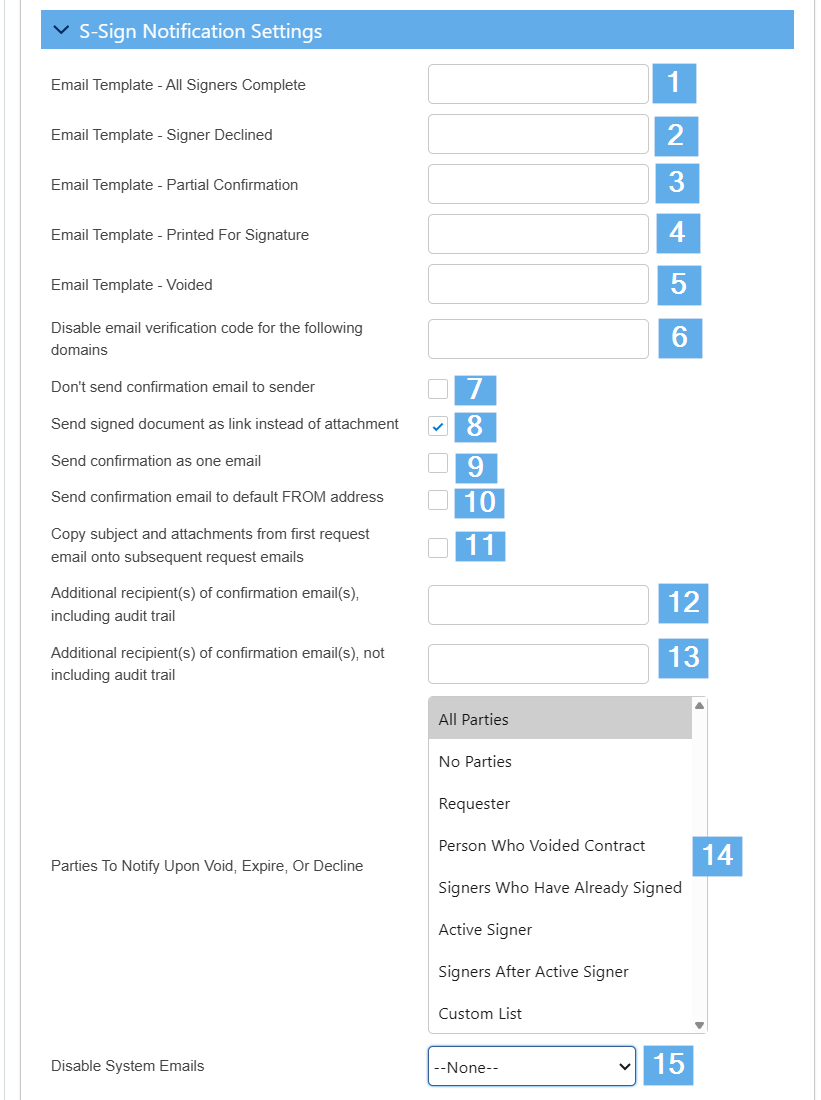 [15] Disable System Emails: This option will disable all emails related to S-Sign.